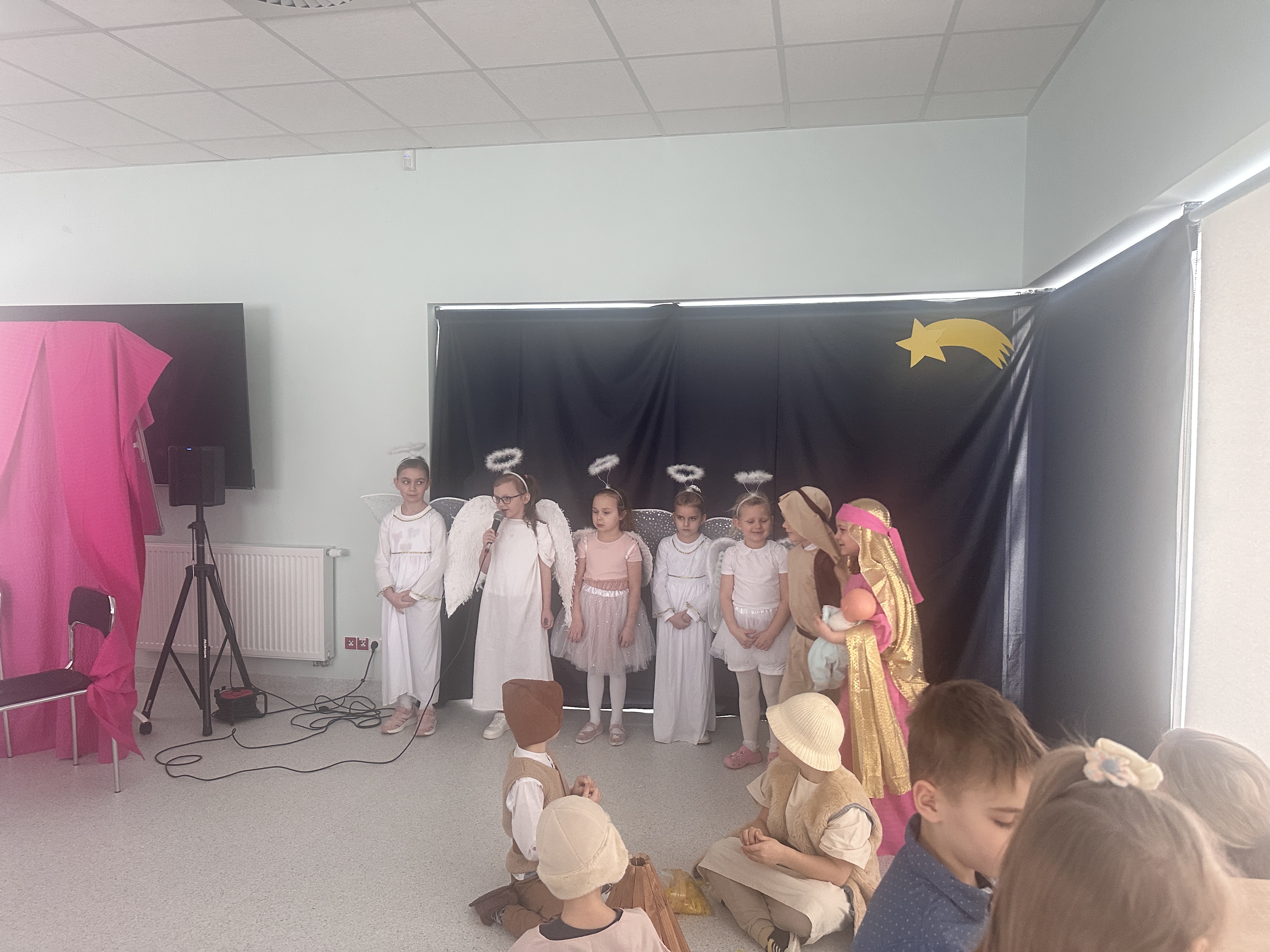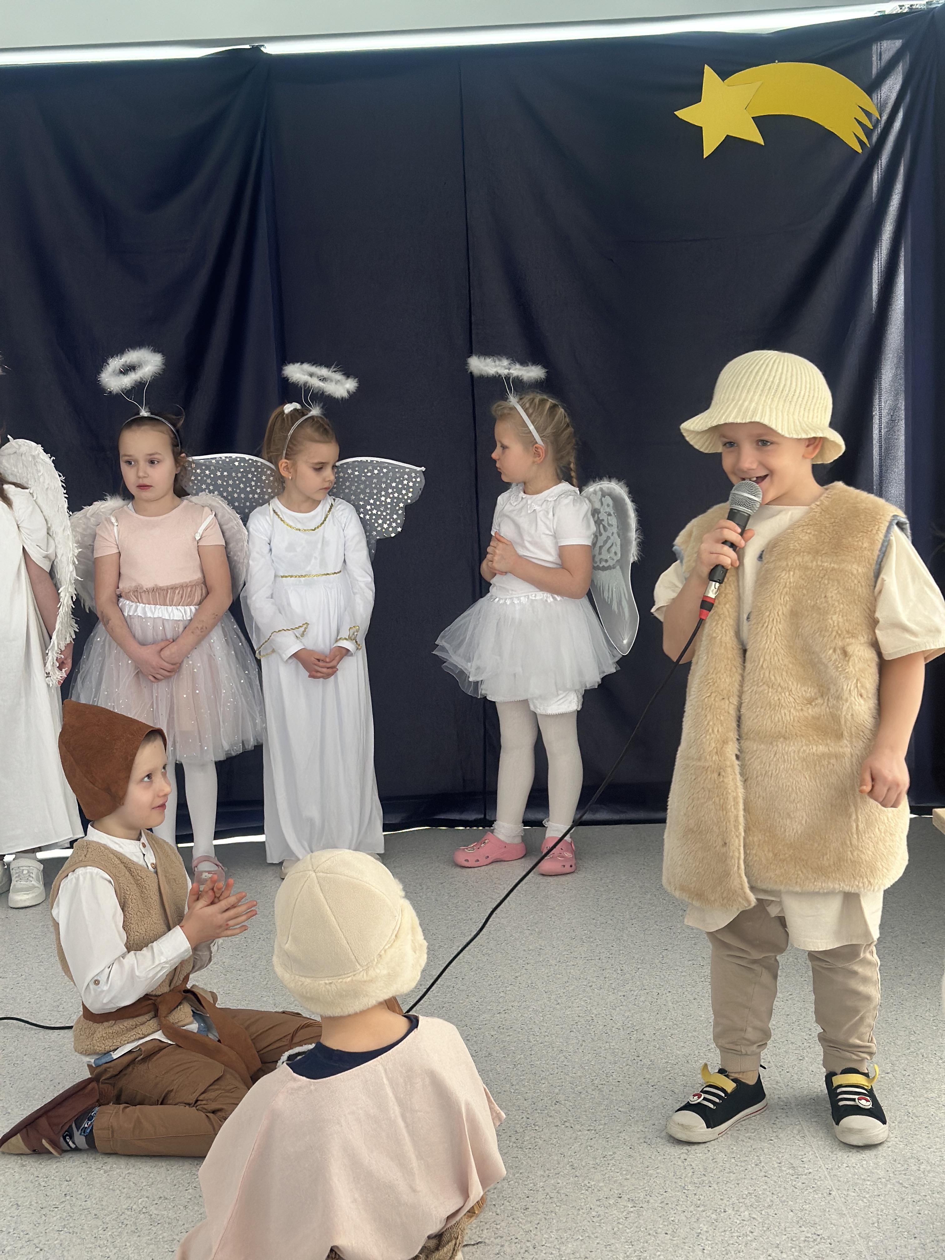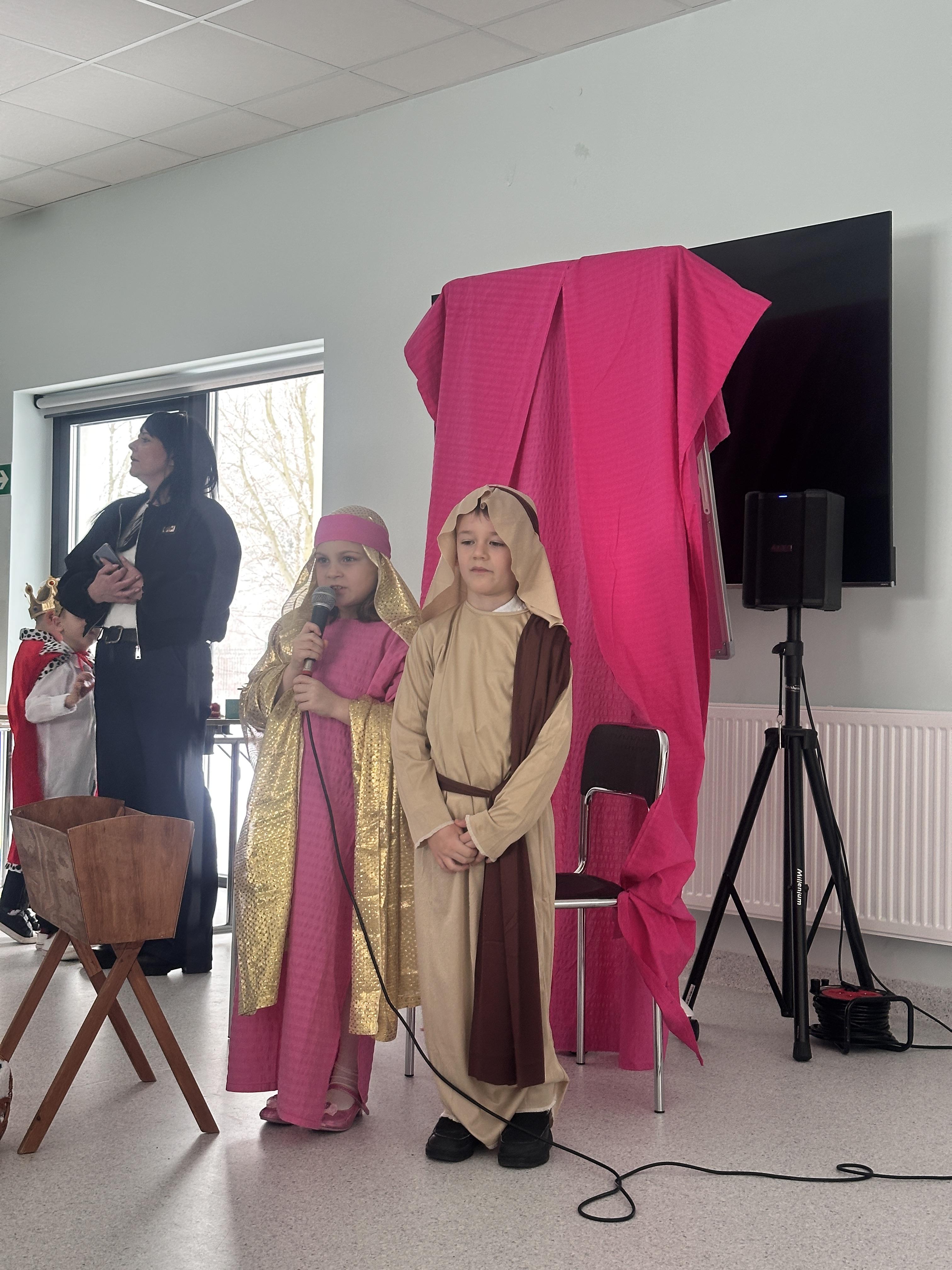10 lutego w sali Przyjaznej Świetlicy odbyło się wyjątkowe przedstawienie przygotowane przez klasę 0b z okazji Dnia Babci i Dziadka. Mali artyści z ogromnym zaangażowaniem wcielili się w swoje role, opowiadając historię narodzin Jezusa. Dzieci zaprezentowały się wspaniale – z przejęciem recytowały swoje kwestie, śpiewały kolędy i z dumą występowały przed licznie zgromadzoną publicznością.