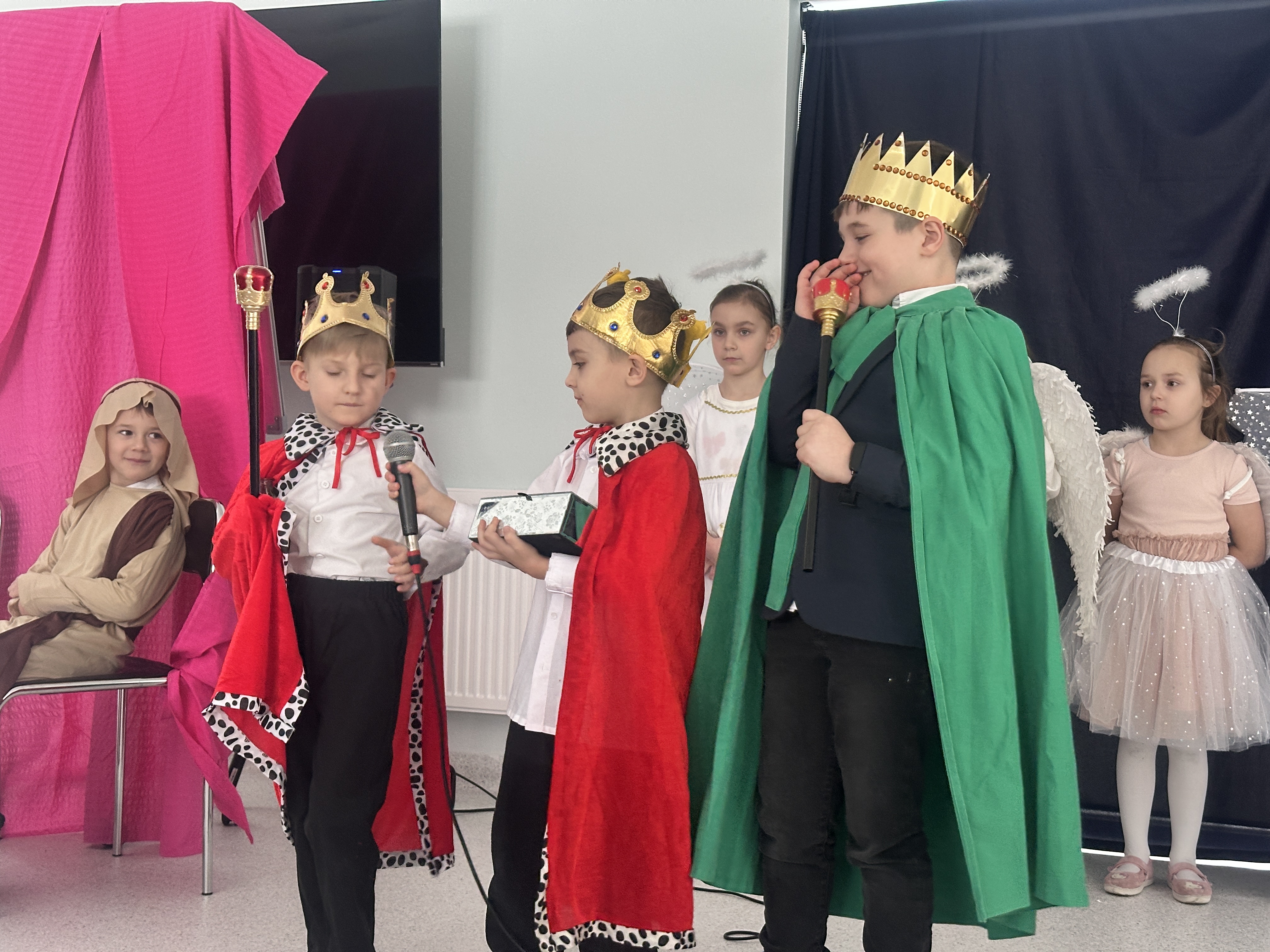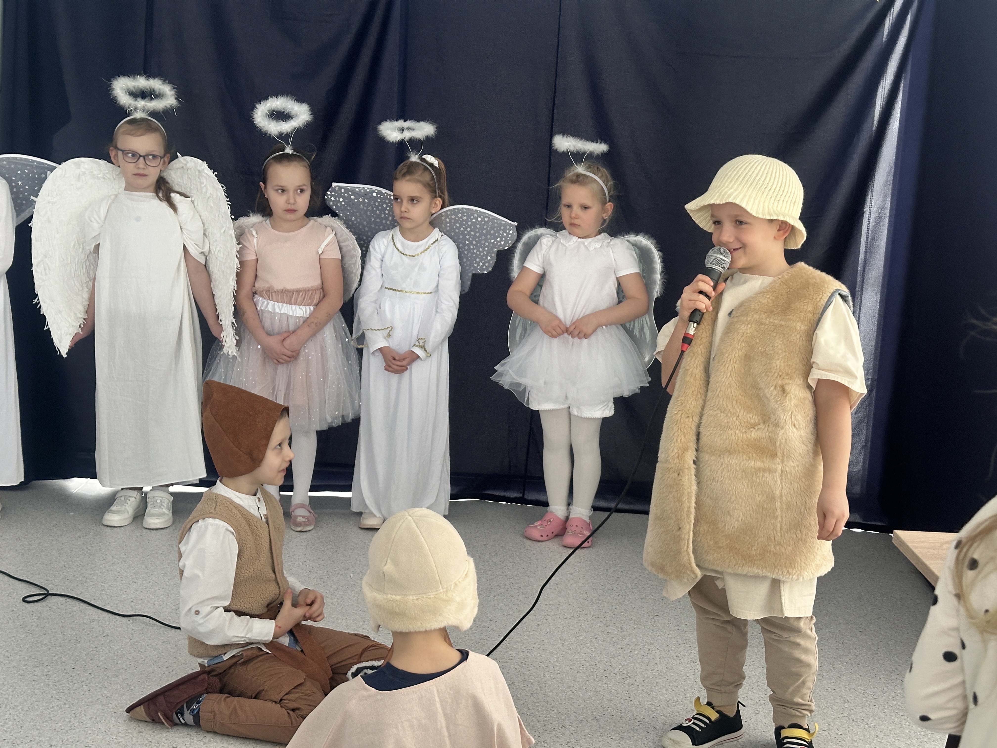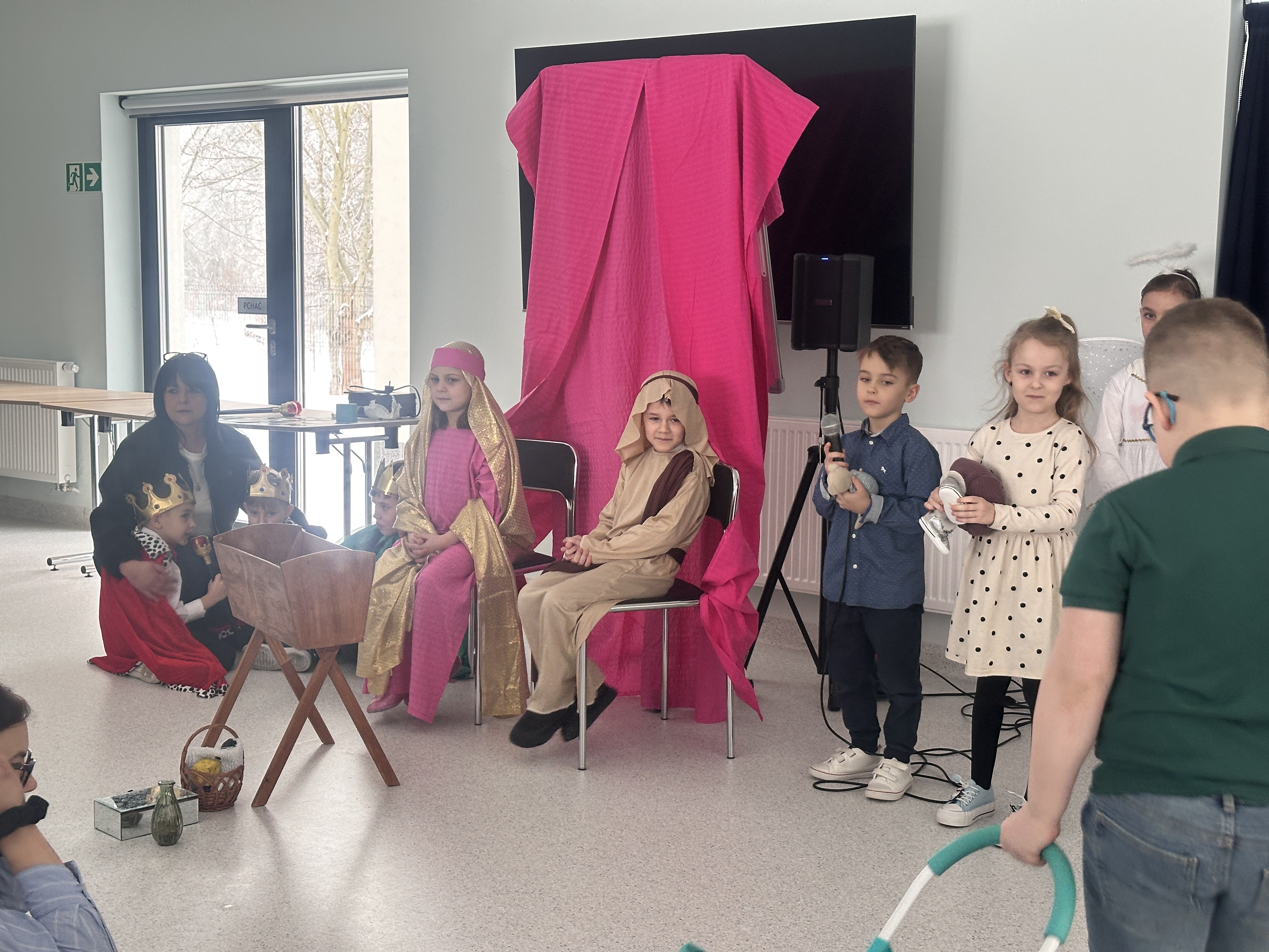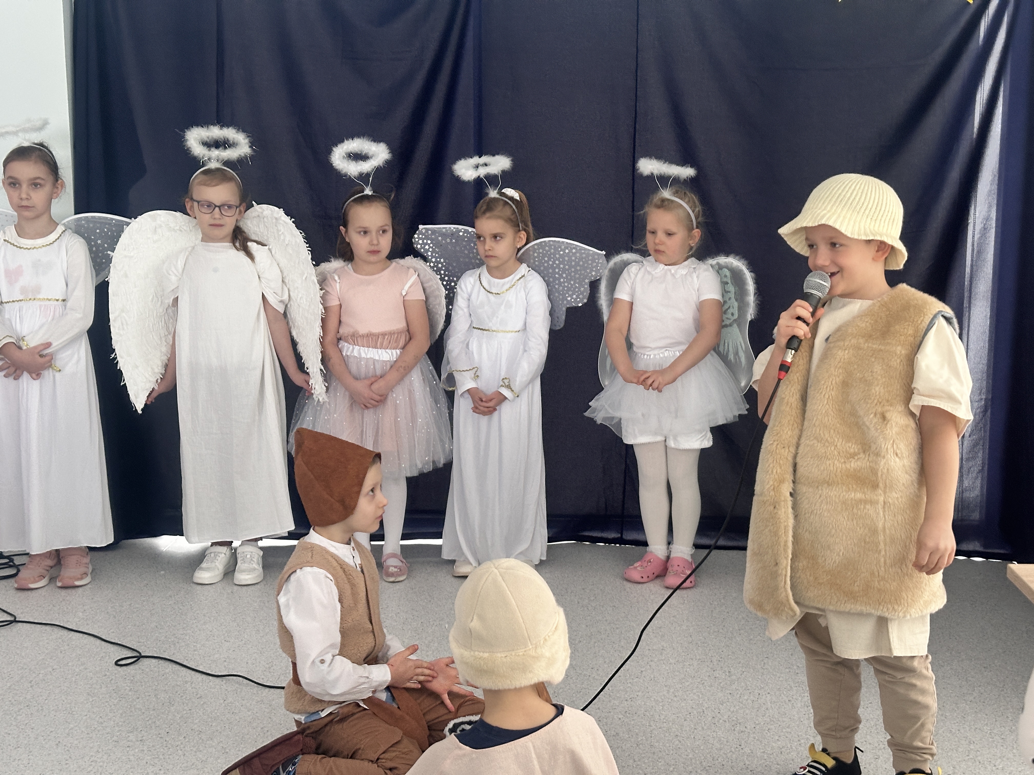 10 lutego w sali Przyjaznej Świetlicy odbyło się wyjątkowe przedstawienie przygotowane przez klasę 0b z okazji Dnia Babci i Dziadka. Mali artyści z ogromnym zaangażowaniem wcielili się w swoje role, opowiadając historię narodzin Jezusa. Dzieci zaprezentowały się wspaniale – z przejęciem recytowały swoje kwestie, śpiewały kolędy i z dumą występowały przed licznie zgromadzoną publicznością.