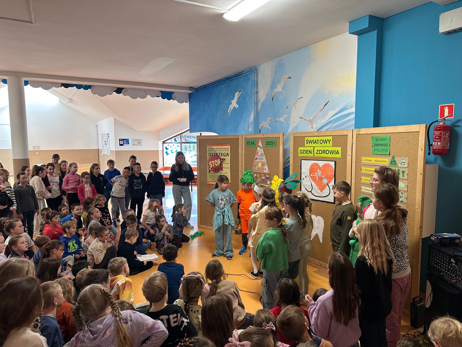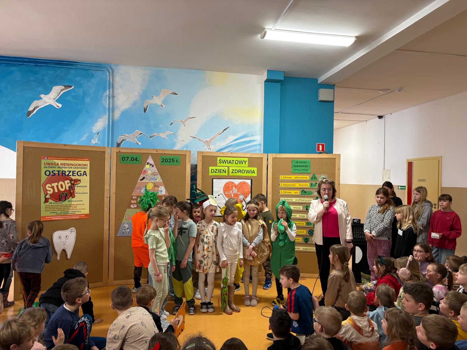 Obchody Tygodnia dla Zdrowia zakoÅ„czyliÅ›my spotkaniem, na którym przypomnieliÅ›my najważniejsze zasady zdrowego stylu życia. Klasa 1a zaprezentowaÅ‚a wiersz Jana Brzechwy „Na straganie”, który w zabawny sposób ukazaÅ‚ bogactwo warzyw i owoców. Dodatkowo, w piosence „Ruch, ruch, ruch” uczniowie przypomnieli o codziennej aktywnoÅ›ci fizycznej, zachÄ™cajÄ…c wszystkich do regularnego ruchu i zabawy na Å›wieżym powietrzu.
